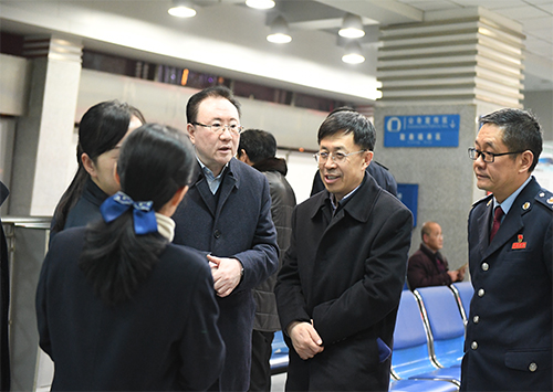 1月15日下午,省局党组成员、市局党组书记、局长孟军在武昌区国税局、武昌区地税局和市局12366武汉中心视频管理监控指挥室调研大征期工作情况。孟军强调,要全力以赴抓好2018年首个大征期工作,市局、区局相关领导和部门要坚守到最后一刻,最后一名纳税人办完税的时间才是我们的下班时间。