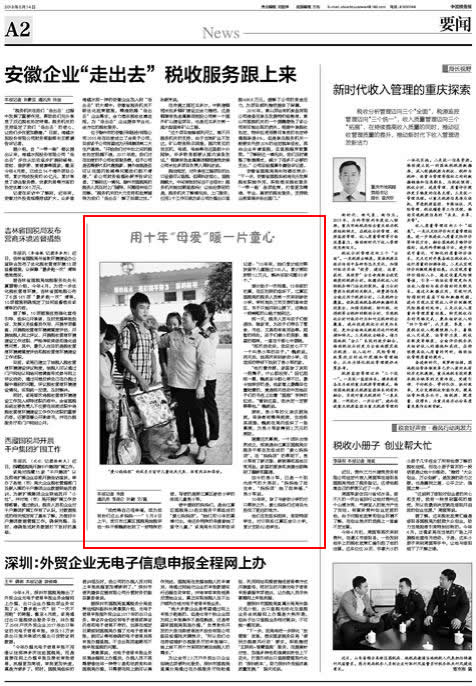 | 【中国税务报】用十年“母爱”暖一片童心 | |